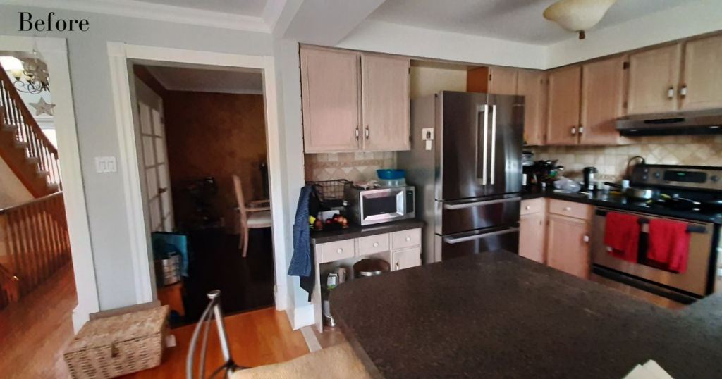 Once our clients were happy with the renovation plan, we began work by opening up the space and eliminating the formal dining room, which they rarely used. We then decided to flip the main floor layout so the expanded kitchen is now where the living room once was.