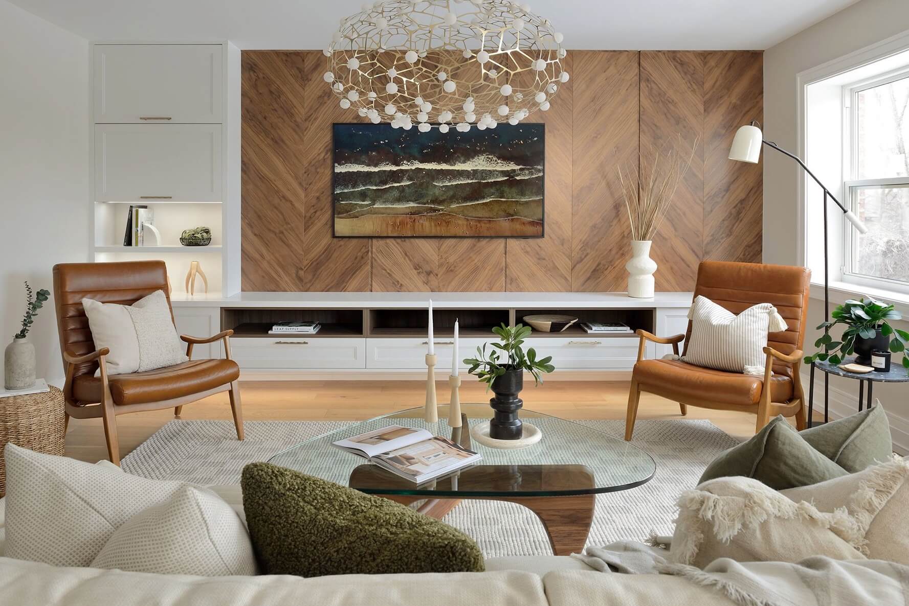 Our design experts showed them just how much we could do to reimagine their floor plan and create the main living area they’d always dreamed of, complete with a spacious kitchen, luxe living room, dining area fit for large family dinners, and even a custom bar area.